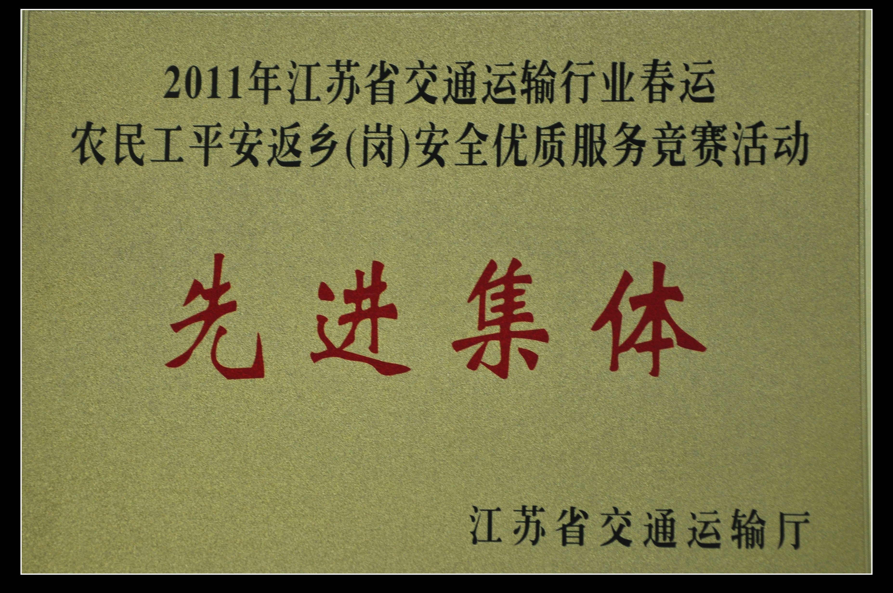 集團(tuán)公司獲2011年江蘇省交通運(yùn)輸行業(yè)春運(yùn)農(nóng)民工平安返鄉(xiāng)(崗)安全優(yōu)質(zhì)服務(wù)競賽活動先