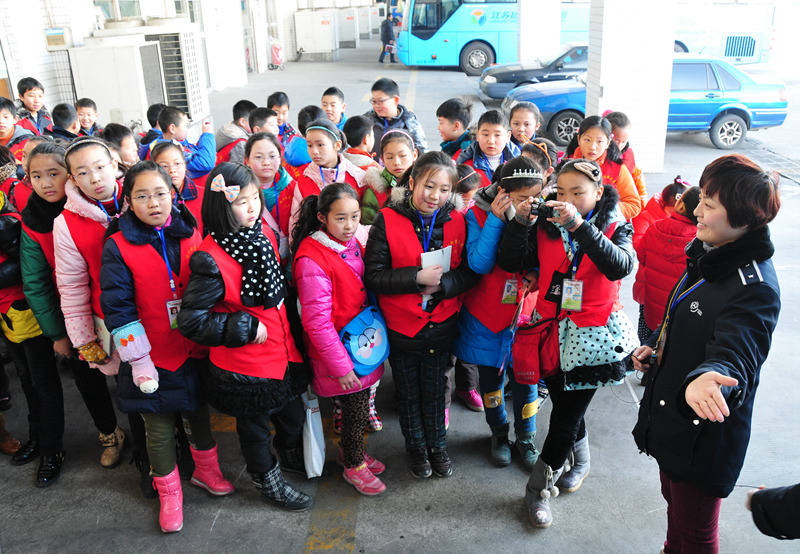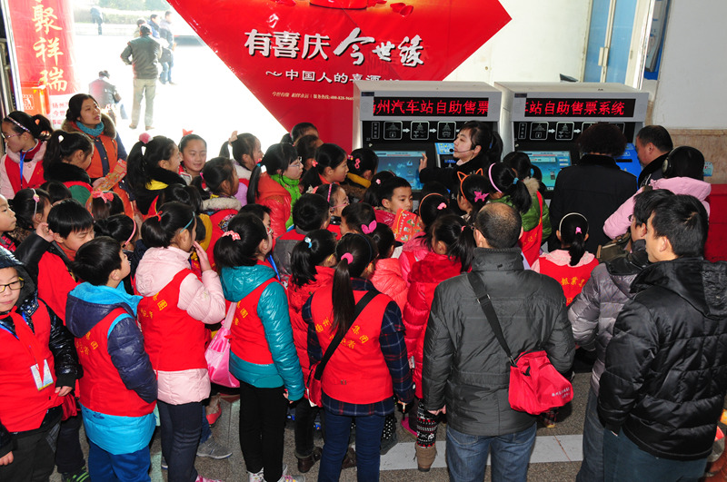 1月22日,來自揚(yáng)州報(bào)業(yè)傳媒集團(tuán)的60多名小記者來到揚(yáng)州汽車站,觀看了GPS監(jiān)控中心、售票大廳和自助售票機(jī)工作情況,體驗(yàn)了車站安檢、檢票工作,并采訪了揚(yáng)汽集團(tuán)總經(jīng)理、黨委書記吳忠俊……他們在現(xiàn)場親身體會了繁忙而和諧的2014年春運(yùn)。