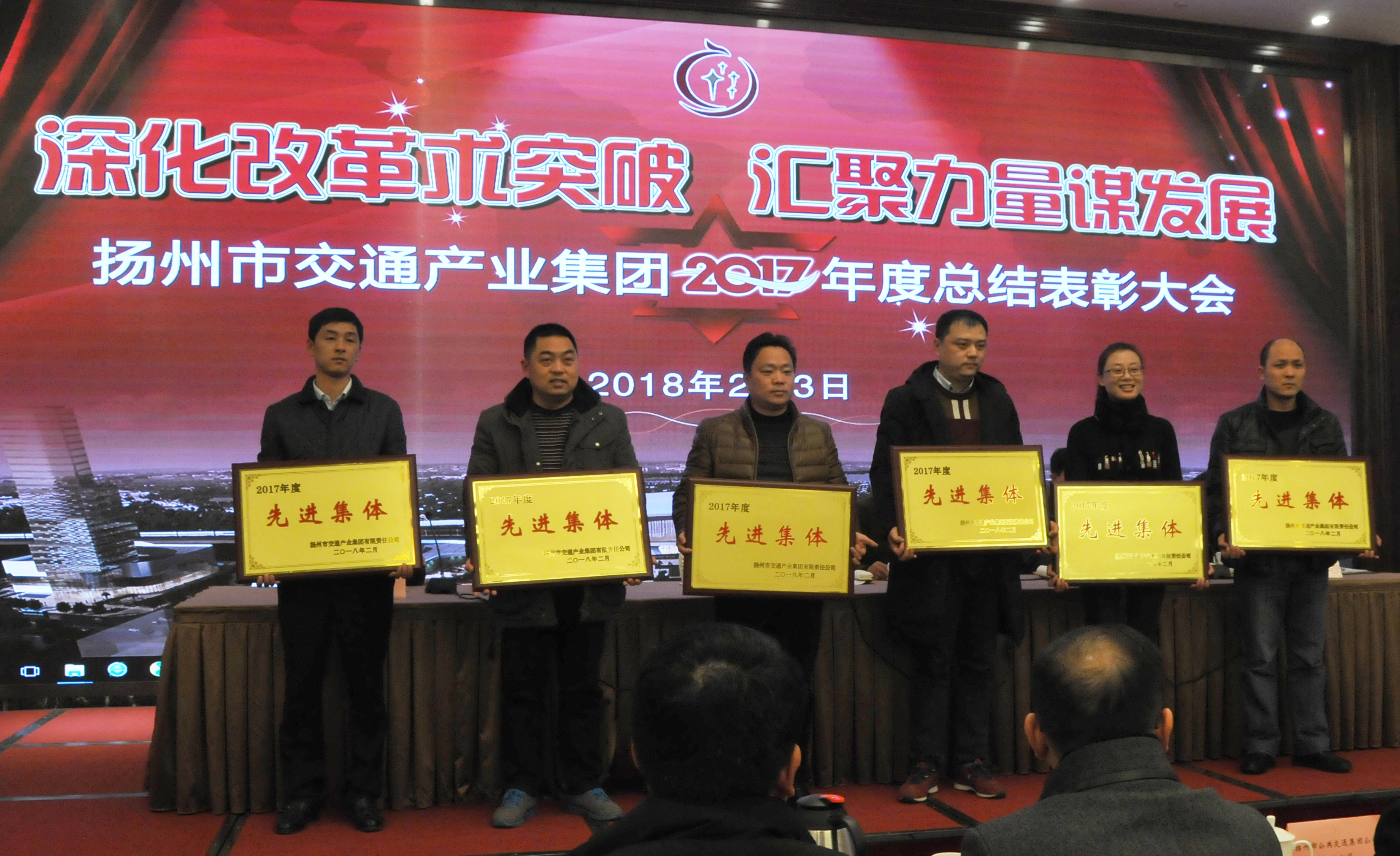 2月3日下午,揚州市交通產(chǎn)業(yè)集團2017年度總結(jié)表彰大會在二十四橋賓館玫瑰廳召開。交通產(chǎn)業(yè)集團領(lǐng)導(dǎo)班子及來自產(chǎn)業(yè)集團各單位的領(lǐng)導(dǎo)、中層干部、青年骨干、受表彰人員200余人參加會議。揚汽集團揚州站、東站、定制公司3家單位榮獲先進集體,王甜甜等16人榮獲先進個人。