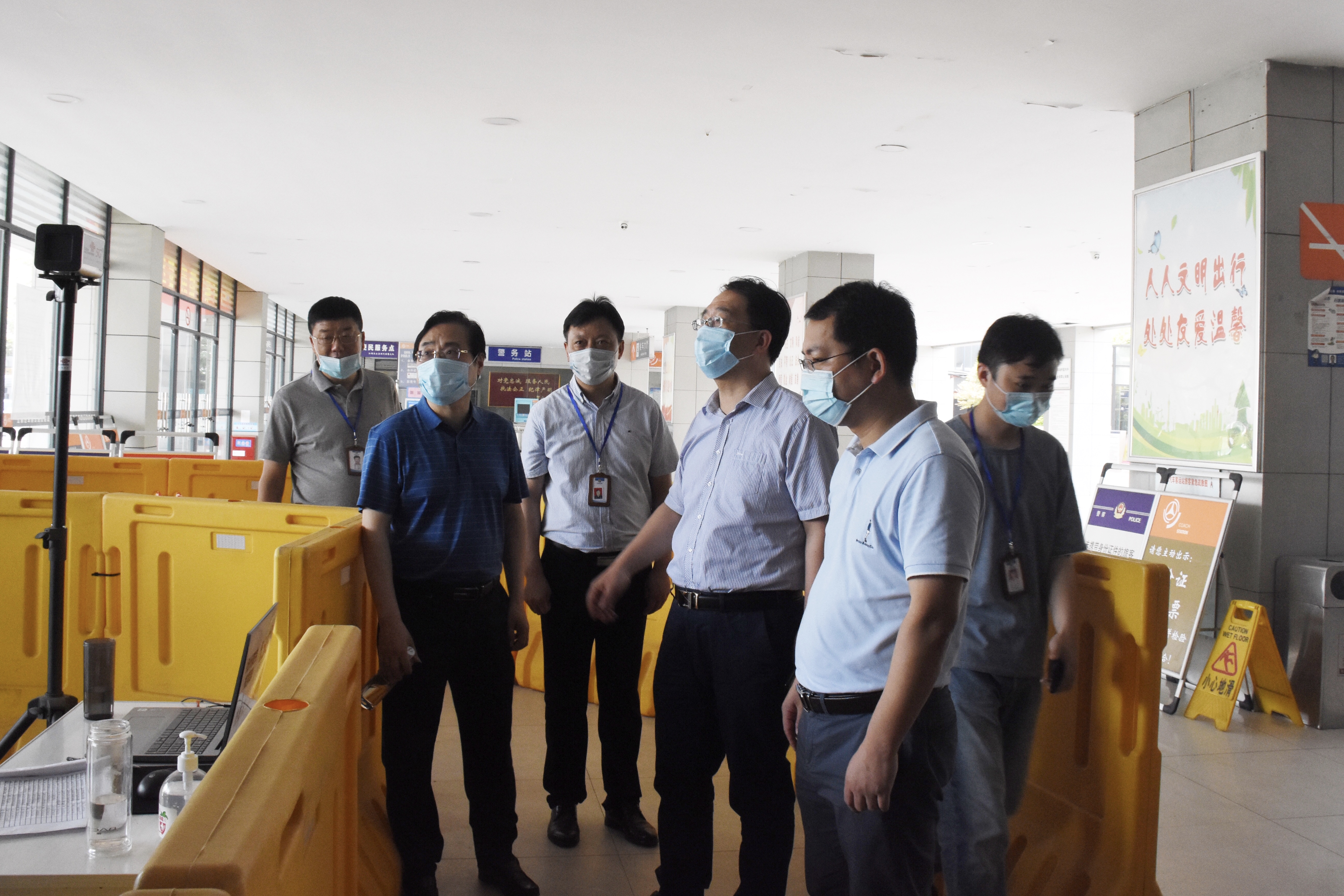 督查組對(duì)車站嚴(yán)格落實(shí)上級(jí)各項(xiàng)管控措施并取得的成效表示肯定,同時(shí),要求相關(guān)工作人員要進(jìn)一步提高政治站位,落實(shí)主體責(zé)任,切實(shí)抓緊抓實(shí)抓細(xì)抗疫情、穩(wěn)經(jīng)濟(jì)、謀發(fā)展各項(xiàng)工作。一是聚焦常態(tài)化疫情防控,緊盯外防輸入,內(nèi)防反彈,切實(shí)做好各類公共場(chǎng)所和運(yùn)輸工具勤通風(fēng)、勤消毒,降低疫情傳播風(fēng)險(xiǎn)。二是進(jìn)一步提振信心,迎難而上,努力克服疫情給企業(yè)生產(chǎn)經(jīng)營帶來的嚴(yán)重影響,全力以赴抓好復(fù)工復(fù)產(chǎn)工作,切實(shí)做到疫情防控和生產(chǎn)經(jīng)營,兩手抓、兩不誤。