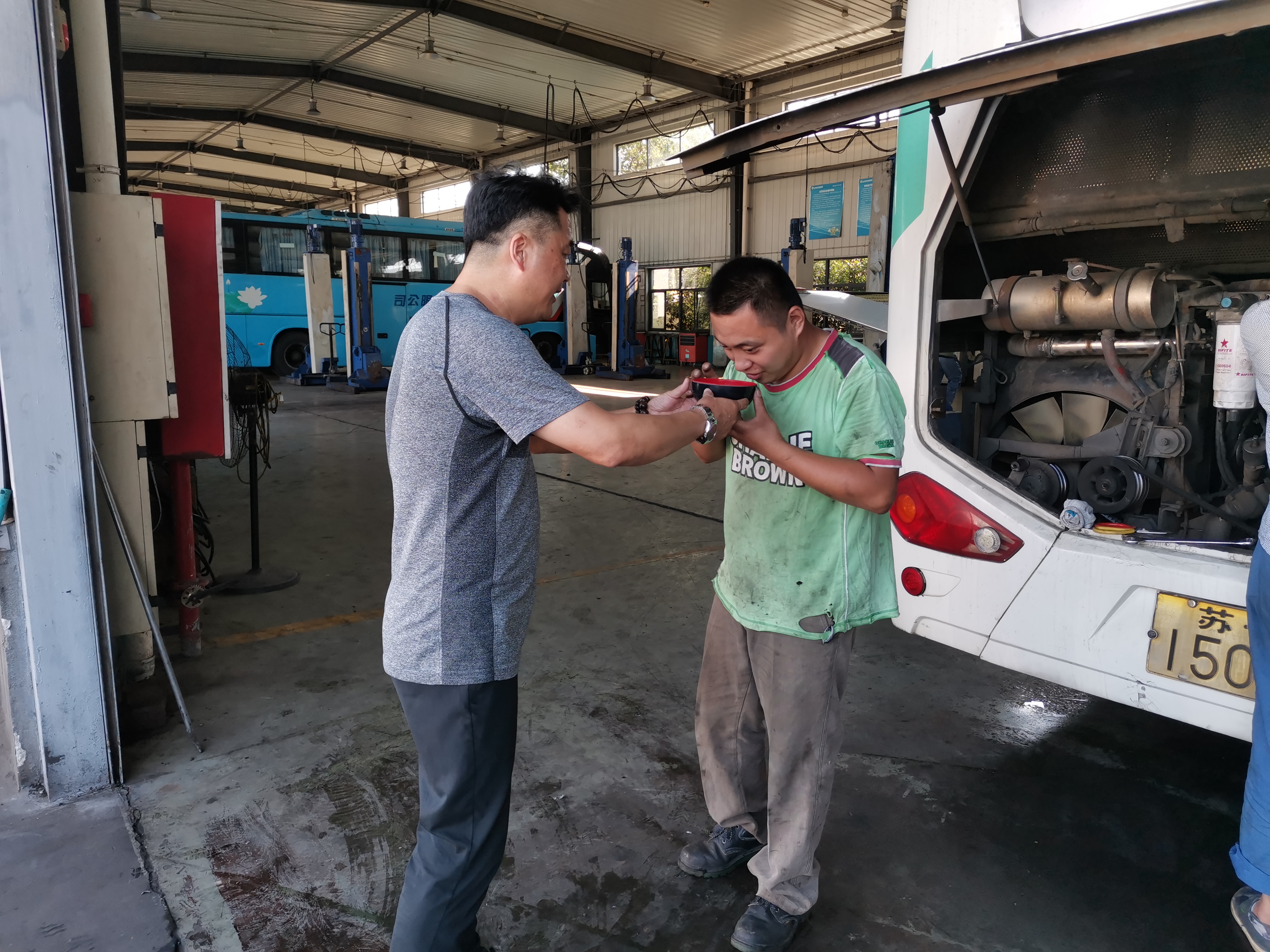 修理廠:針對高溫天氣,修理廠多種防暑措施并進,以發(fā)放藿香正氣水、龍虎人丹、毛巾、肥皂等防暑降溫用品以及全天不限時供應(yīng)礦泉水,堅持每日發(fā)放冰鎮(zhèn)綠豆湯等方式,避免職工中暑現(xiàn)象發(fā)生,同時還要求班組時刻關(guān)注組員身體狀況,著重關(guān)注“三高”人群每日服藥情況,保持休息室空調(diào)長效制冷,確保職工及時有效防暑避暑,營造高溫下安全生產(chǎn)氛圍。