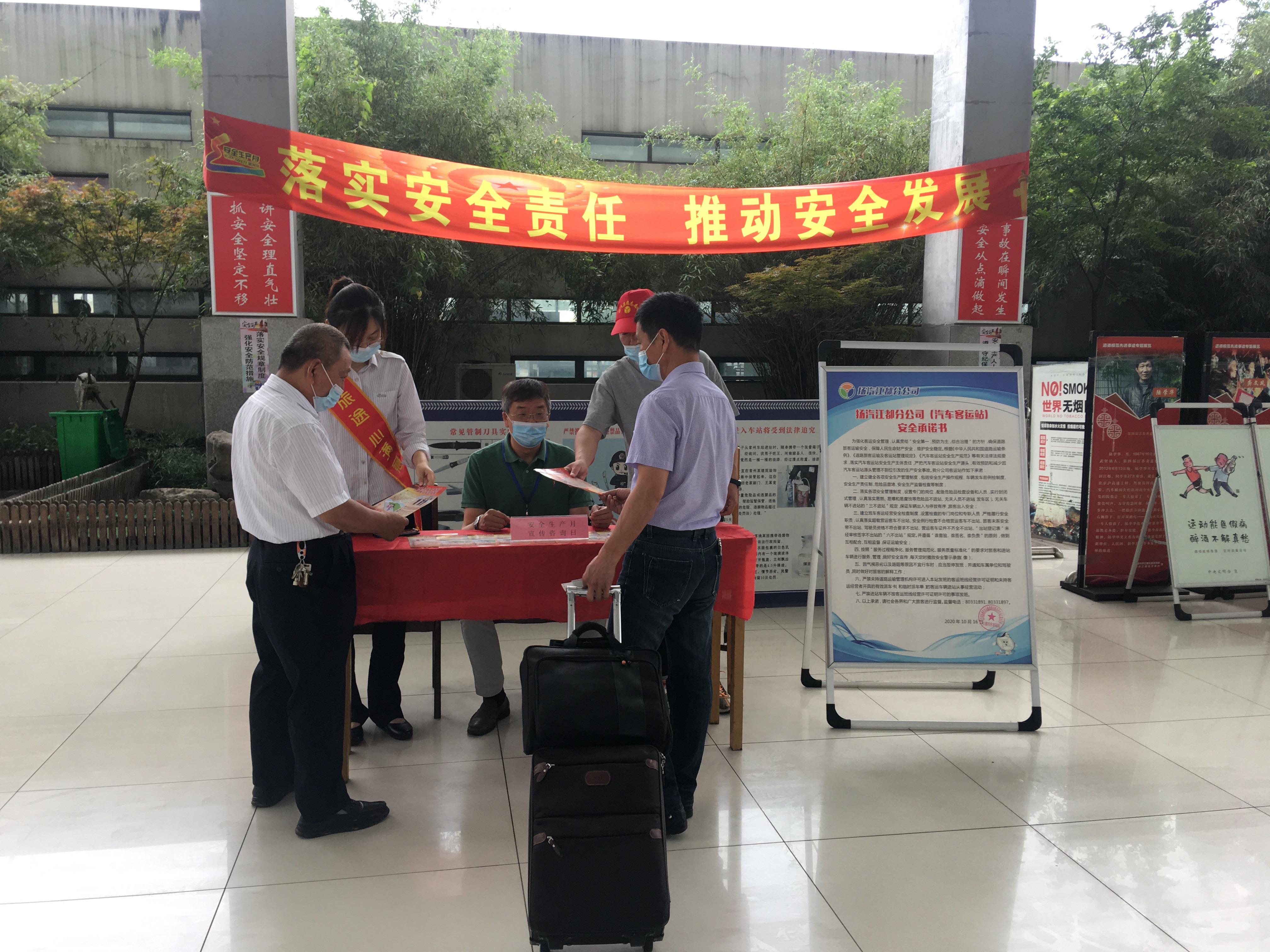 6月17日,集團所屬汽車客運站在確保疫情防控安全的前提下,在車站大廳內(nèi)設(shè)立了安全生產(chǎn)宣傳服務(wù)臺,各部門、各單位由分管安全領(lǐng)導(dǎo)帶隊,通過安全生產(chǎn)月咨詢?nèi)栈顒,集中向一線職工、來往旅客們發(fā)放安全生產(chǎn)法律法規(guī)宣傳資料,宣傳黨和國家安全生產(chǎn)方針政策,傳遞安全理念,全力營造關(guān)注安全、關(guān)愛生命的濃厚氛圍。