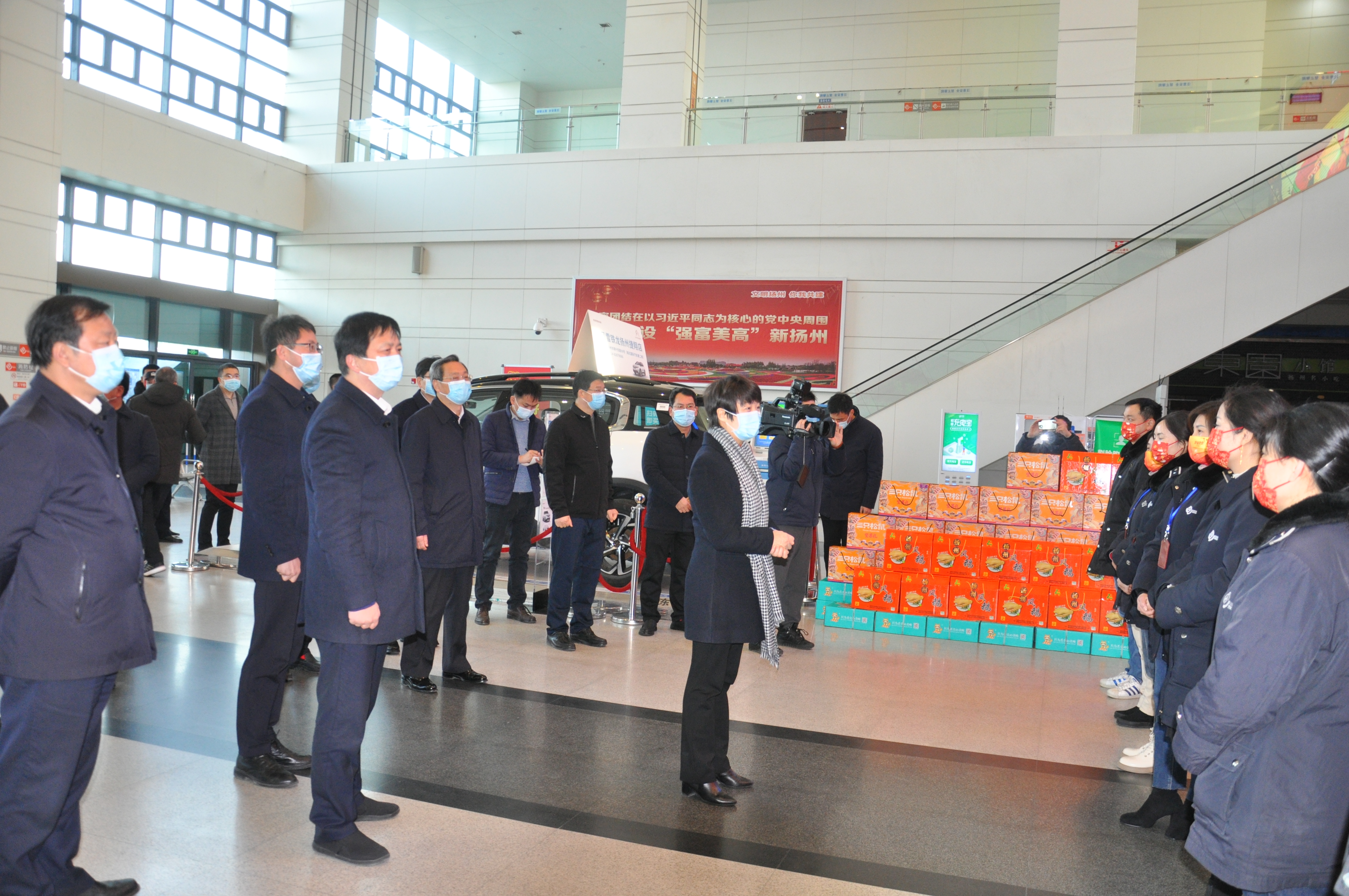 2月1日是大年初一,市委書(shū)記張寶娟一行來(lái)到西部客運(yùn)樞紐,檢查疫情防控工作,并看望慰問(wèn)奮戰(zhàn)在一線的工作人員,代表市委、市政府向他們表示誠(chéng)摯謝意并致以新春的美好祝福。市領(lǐng)導(dǎo)韓驊、張耀武,交通產(chǎn)業(yè)集團(tuán)黨委副書(shū)記、副董事長(zhǎng)、總經(jīng)理方璇智,交通產(chǎn)業(yè)集團(tuán)副總經(jīng)理、揚(yáng)汽集團(tuán)黨委書(shū)記、董事長(zhǎng)龔宇峰,揚(yáng)汽集團(tuán)總經(jīng)理談衛(wèi)國(guó)等及相關(guān)負(fù)責(zé)人陪同檢查。