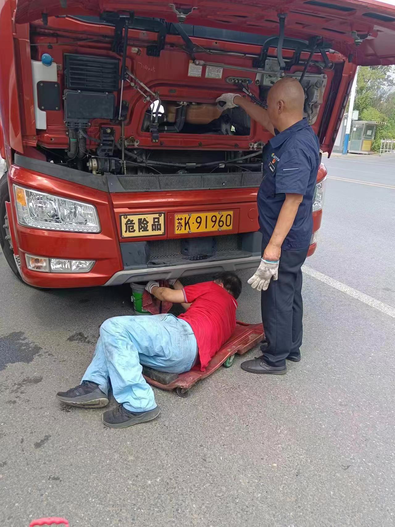 為盡快修復(fù)車輛,搶修人員趕到現(xiàn)場后,在確認(rèn)現(xiàn)場作業(yè)環(huán)境安全的情況下,立馬分工合作,迅速展開故障排查。憑借豐富的維修經(jīng)驗,很快便找到了故障點在于車輛打氣泵不工作,導(dǎo)致無法打氣,造成的車輛無法行駛。經(jīng)過兩個多小時的露天搶修,車輛終于恢復(fù)正常。在一旁等待的貨車?yán)习宓弥囕v恢復(fù)正常后,對揚汽修理廠的服務(wù)以及維修師傅的技藝表示高度認(rèn)可。