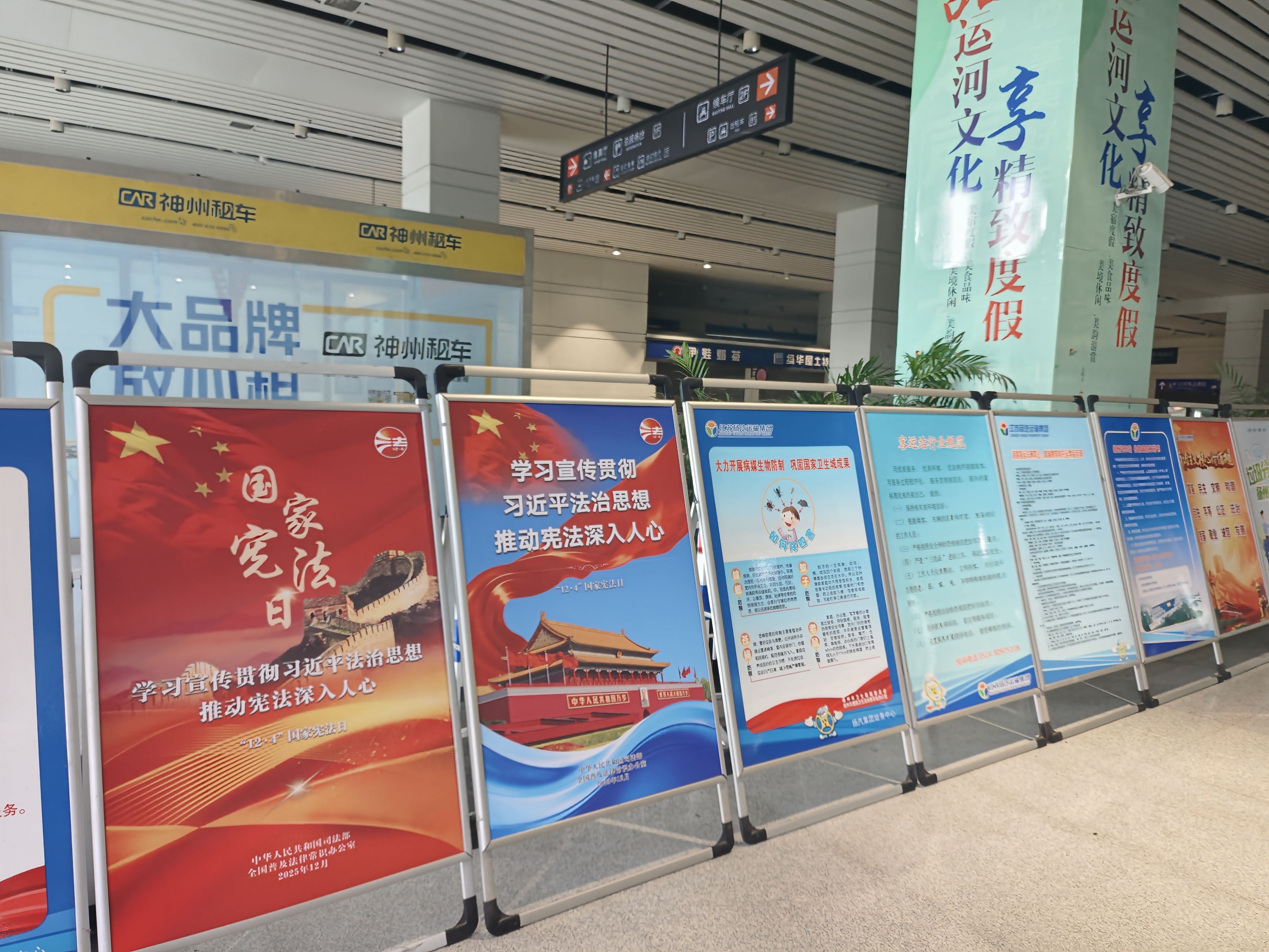為營造濃厚宣傳氛圍,集團(tuán)充分利用線上線下宣傳陣地。在線下,集團(tuán)充分利用交通服務(wù)窗口優(yōu)勢,在東部樞紐、西部樞紐的候車區(qū),科目三考場候場區(qū)及集團(tuán)辦公區(qū)等場所,不僅通過電子大屏滾動(dòng)播放宣傳內(nèi)容,還精心布置了系列主題戧牌,使憲法知識(shí)融入日常工作與服務(wù)場景。線上宣傳同步推進(jìn),通過發(fā)放學(xué)習(xí)資料,擴(kuò)大了宣傳的覆蓋面和靈活性。